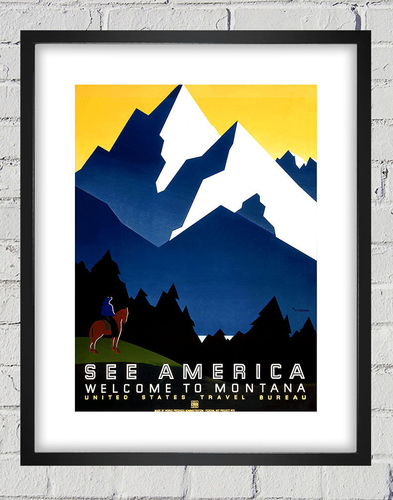 The print is mounted in a pinewood frame (.75 inch depth) that has a stylish black finish and pre-installed hanging hardware with rubber bumpers. The whole piece is protected with shatterproof plexiglass.